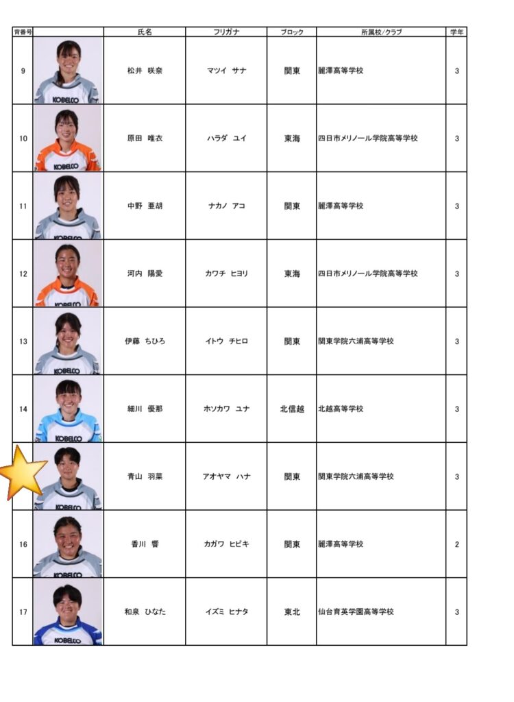 第105回全国高等学校ラグビーフットボール大会 U18花園女子15人制東軍出場選手に、OG青山羽菜さん(関東学院六浦高校3年)が選出されました12/27 花園第一G11:00K.O